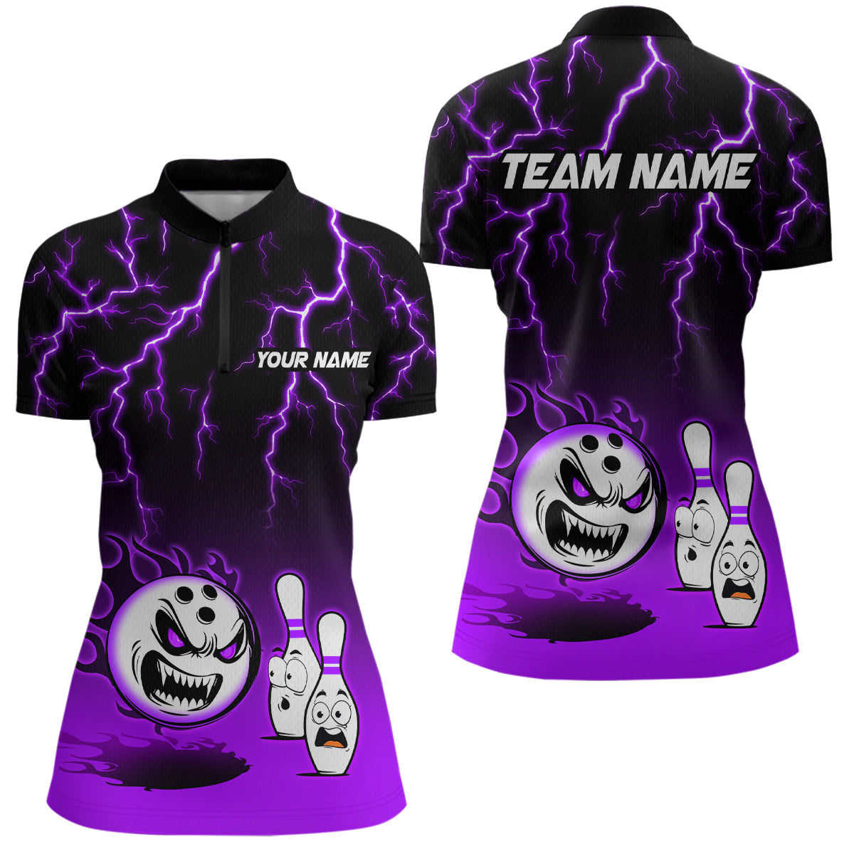 Purple Funny Crazy Bowling Shirt for Women Bowling Jersey Shirts Polo & Quarter- Zip Bowling League HNT17