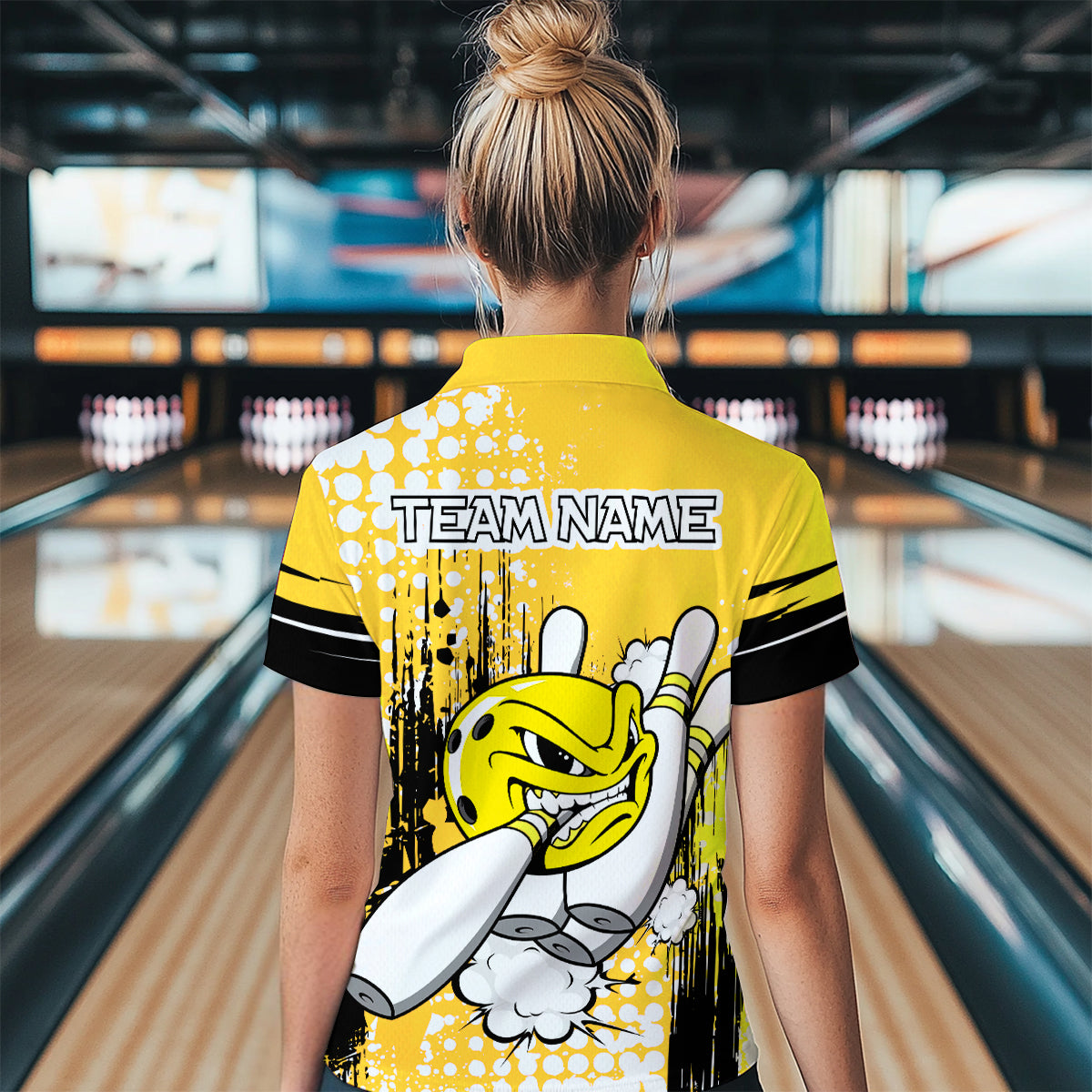 Personalized Yellow Funny Crazy Bowling Shirt for Women Polo & Quarter-Zip Bowling Jersey with Team HNT03