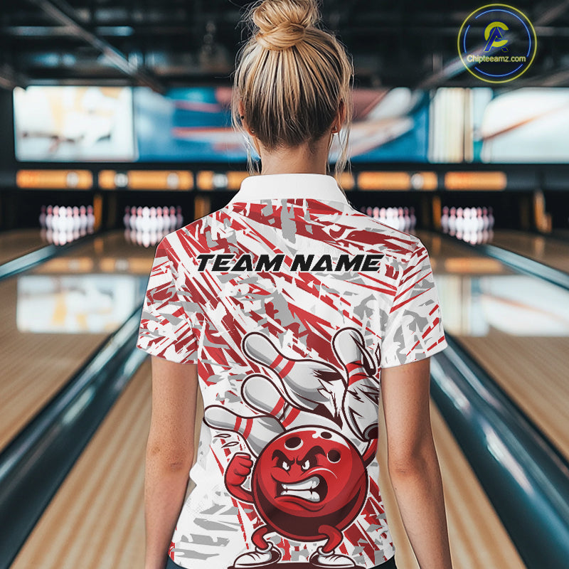 Red Camo Custom Funny Bowling Women Quarter-Zip Shirts, Bowling Team Tournament Shirt IPHW9397