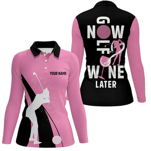 Funny black and pink golf shirts for women custom golf now wine later women golf tops NQS8065