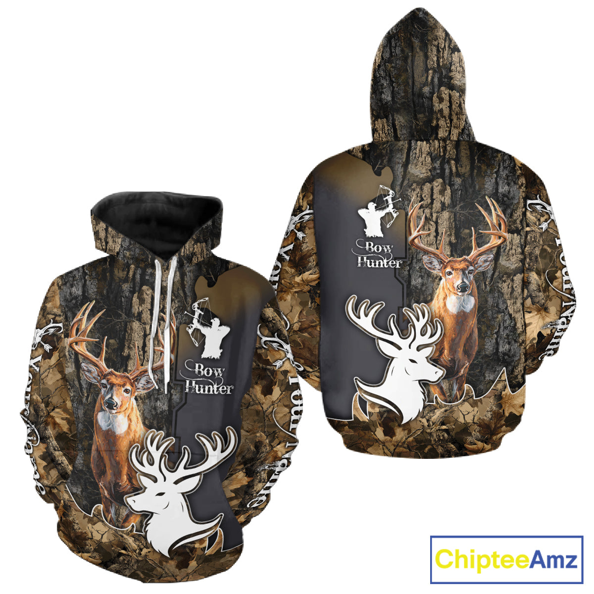 Personalized Deer Hunting 3D All Over Printed Hoodie Brown Leaves Camo, Hunting accessories NBT318