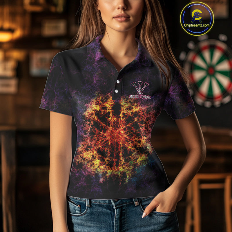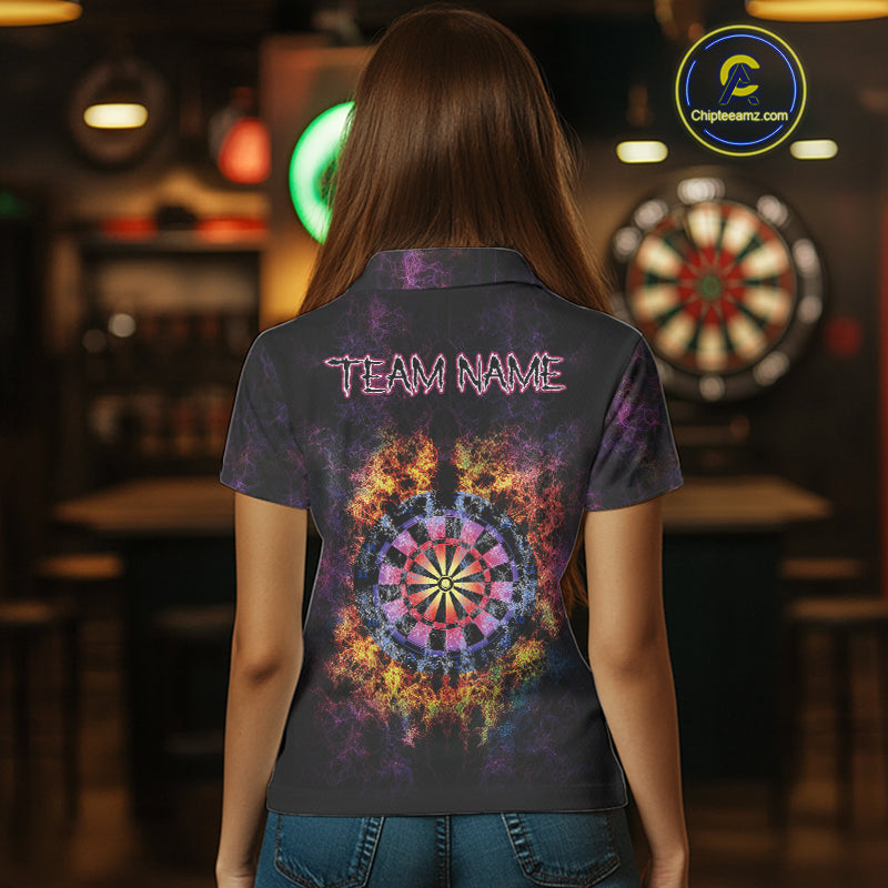 Colorful Flame Dartboard Custom Polo Darts Shirt For Women - Darts Team Jersey NYN0699