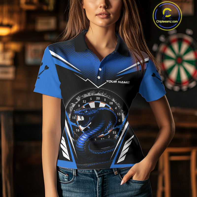 Azure Cobra & Dartboard Women's Darts Polo Shirt - Custom Name For Darts Jersey NYN0753