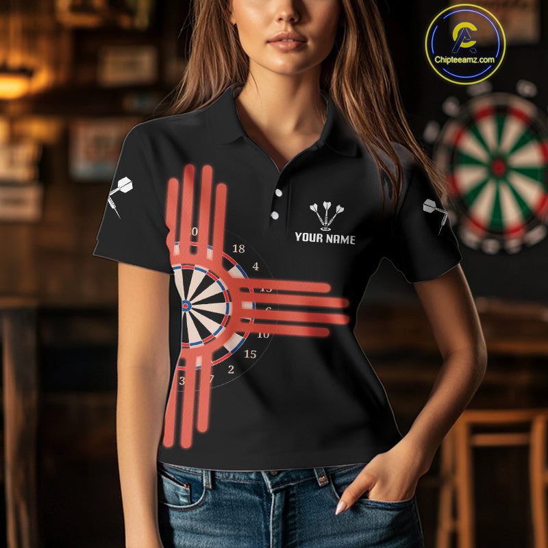 Grunge US Flag & Dartboard Custom Darts Polo Shirt For Women - Darts Team Jersey NYN0762