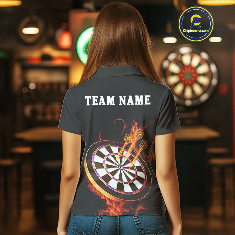 Custom Orange Flames Darts Raven Gothic Polo Darts Jerseys For Women Outfits Dart Jersey NYN0868
