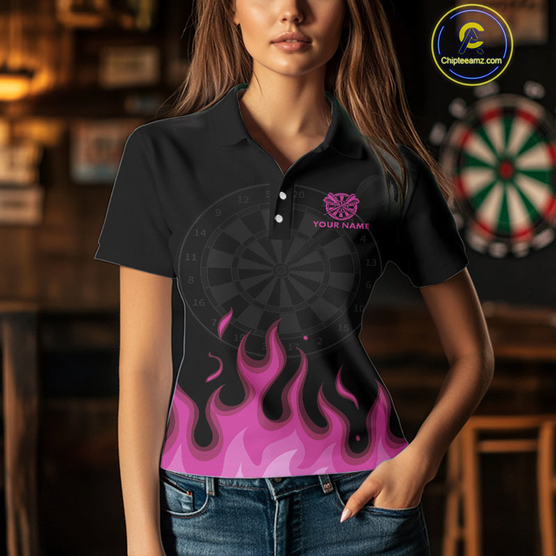 Custom Pink Flames Skull Dartboard Polo Darts Shirt For Women Outfit Dart Team Jersey NYN0996
