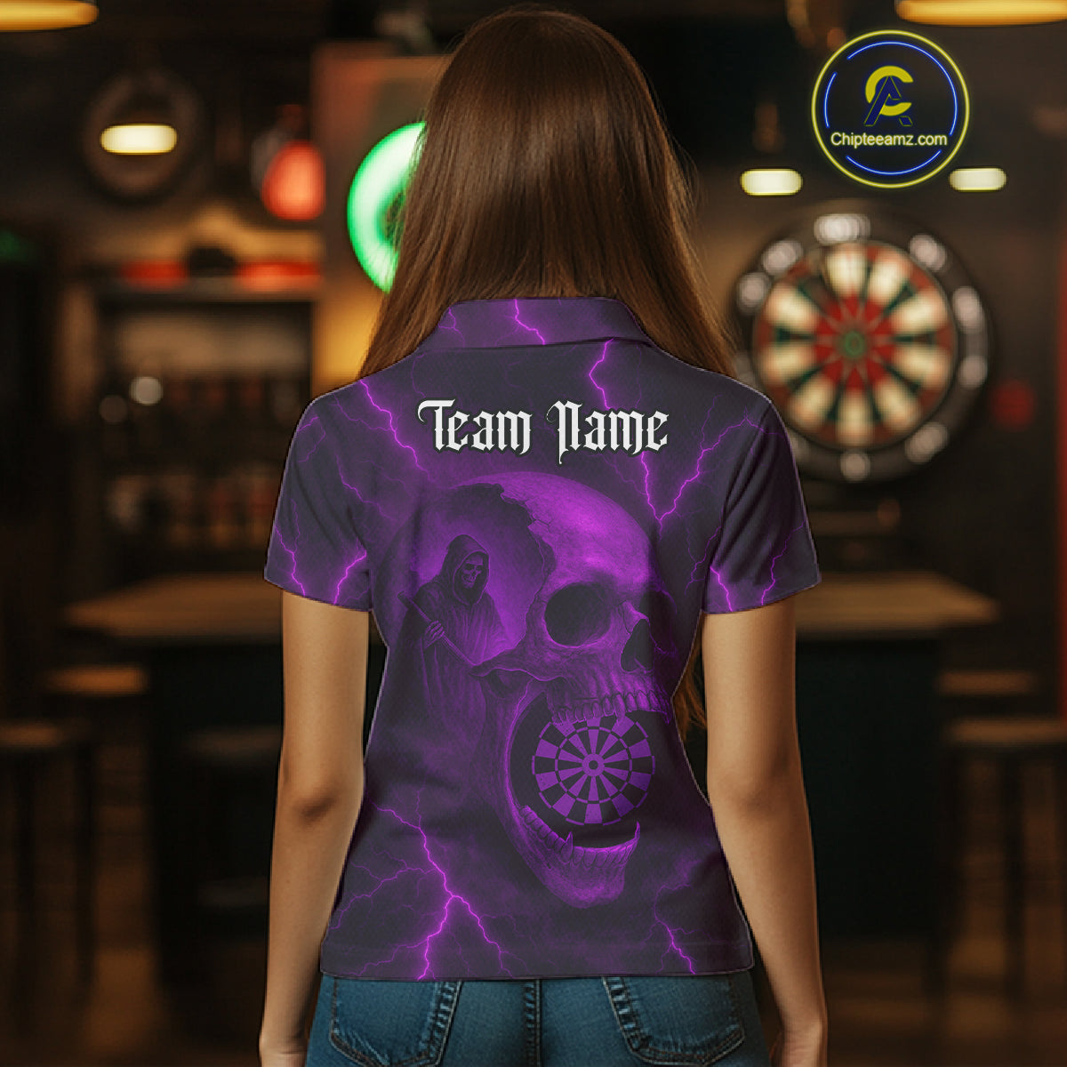 Custom Lightning Purple Grim Reaper Dartboard Women Dart Polo Shirt Skull Dart Team Jersey NYN1445
