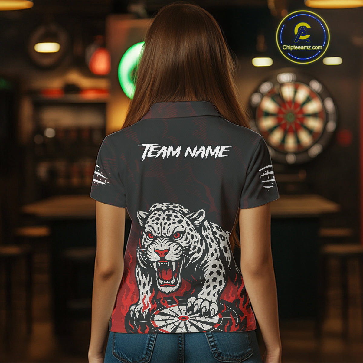 Custom Black And Red Panther Horror Dartboard Dart Polo Shirt For Women Dart Team Jersey NYN1499