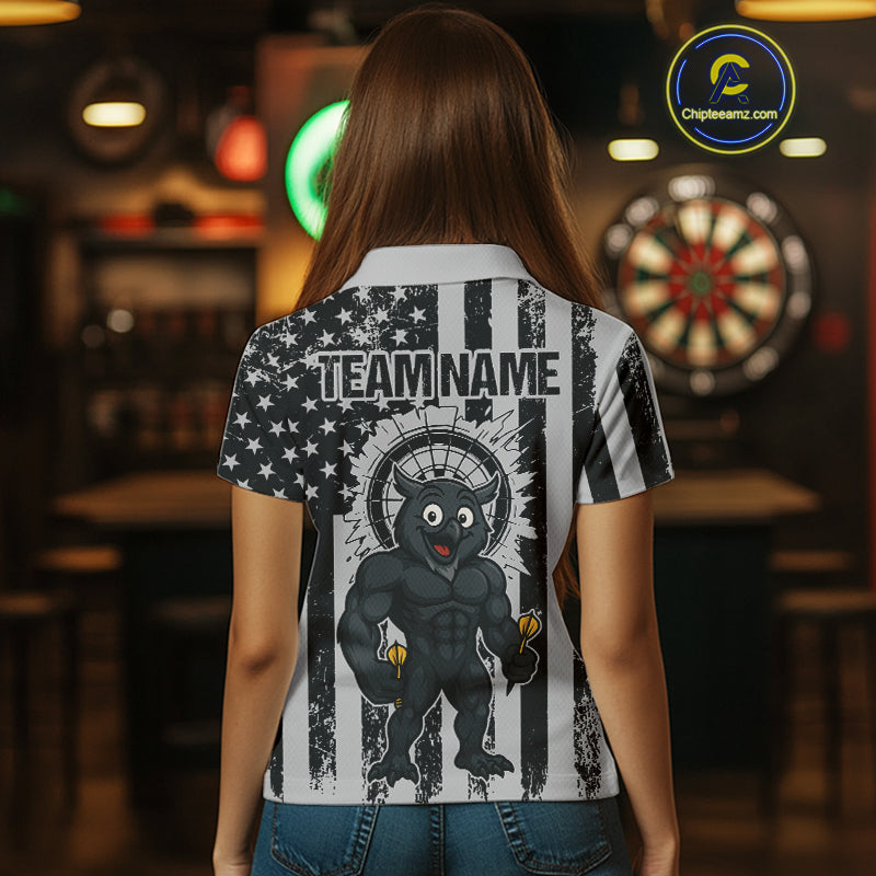 Custom Grunge Grey Owls Dartboard Funny Dart Team Patriotic Women Polo Shirt NYN1536