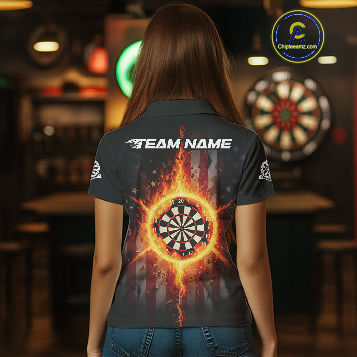 US Flag Fire Flame Cracked Dartboard Custom Women Darts Polo Shirt Patriotic Dart Jerseys NYN1860