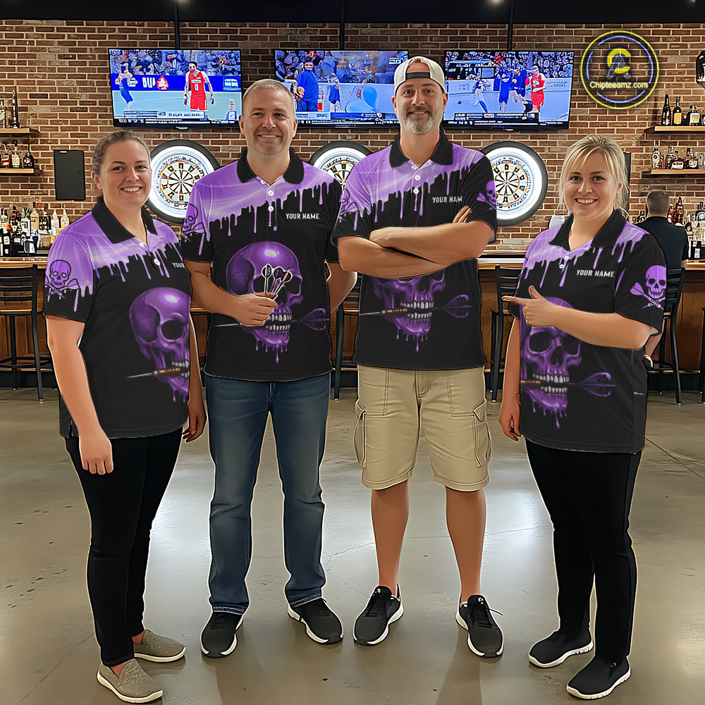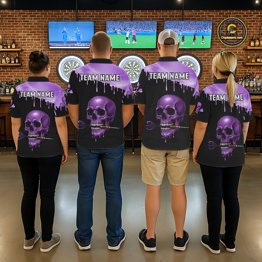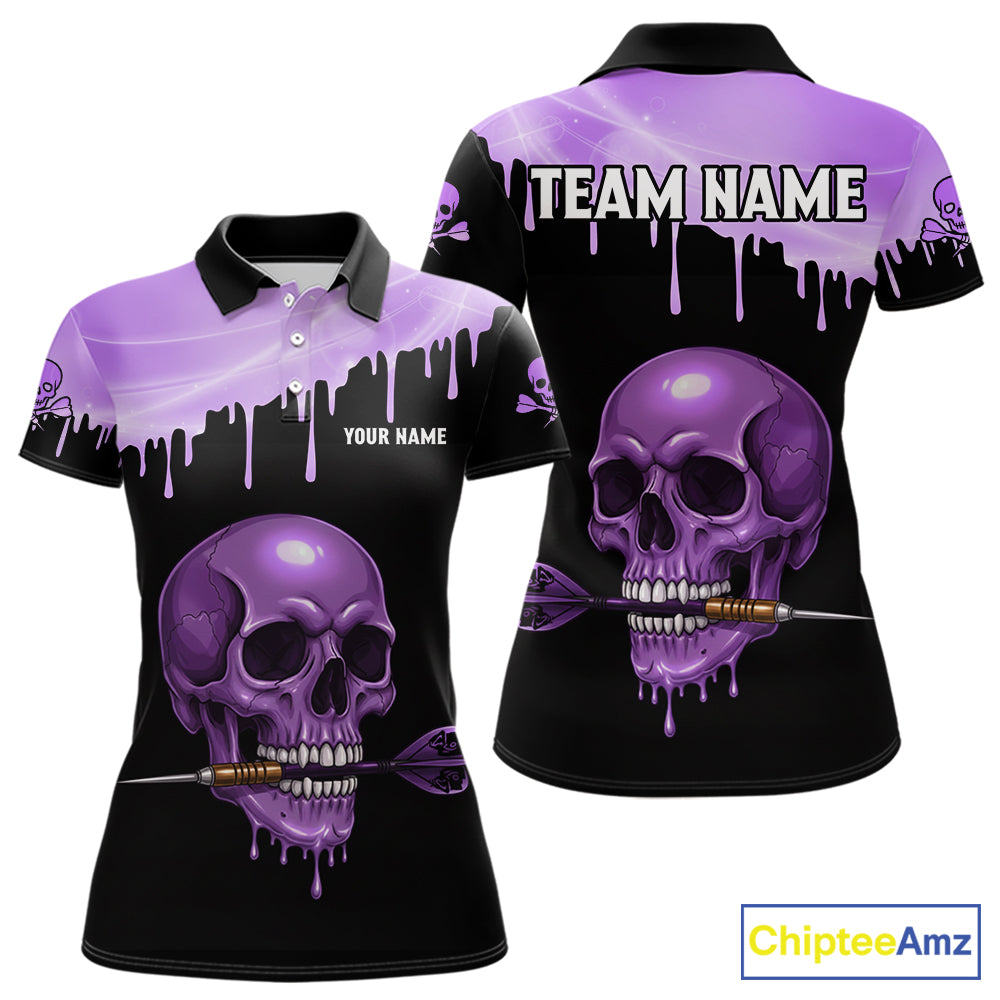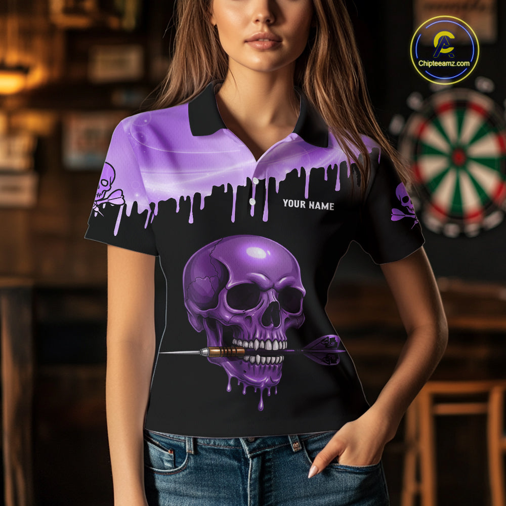 Custom Holographic Purple Skull Darts Shirt Polo For Women Light Skull Dart League Jerseys NYN2109