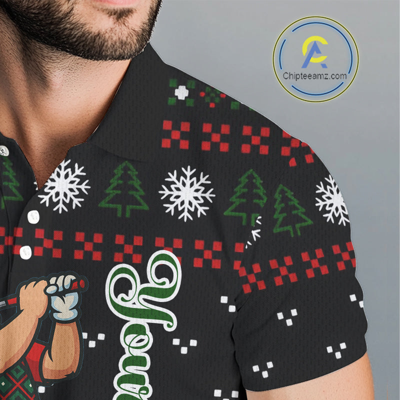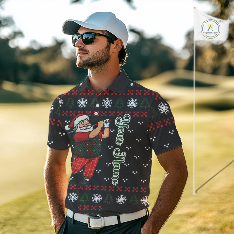 Funny Ugly Christmas pattern Santa Golf Polo Shirts For Men Custom best Mens golf wear, golfing gifts NQS11067