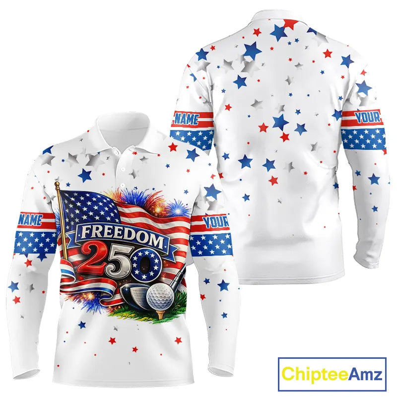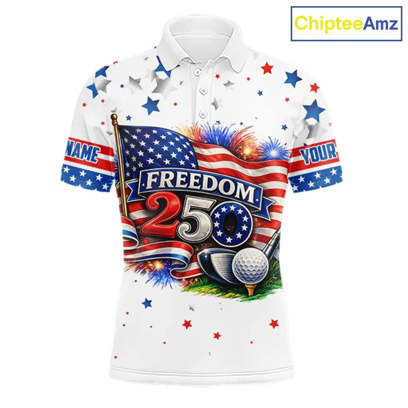 Freedom 250th Anniversary American Flag Golf Polo shirts for Men Custom patriotic team golf outfit NQS11445