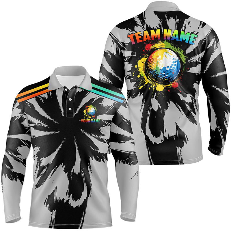 Black and gray pattern custom watercolor golf ball team Mens golf polos shirt, unique golf gifts NQS8058