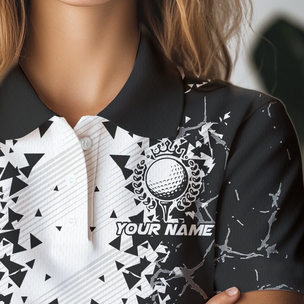 Black and White broken Golf ball Polo shirt for Women Custom Team golf uniform ladies golf tops NQS9787