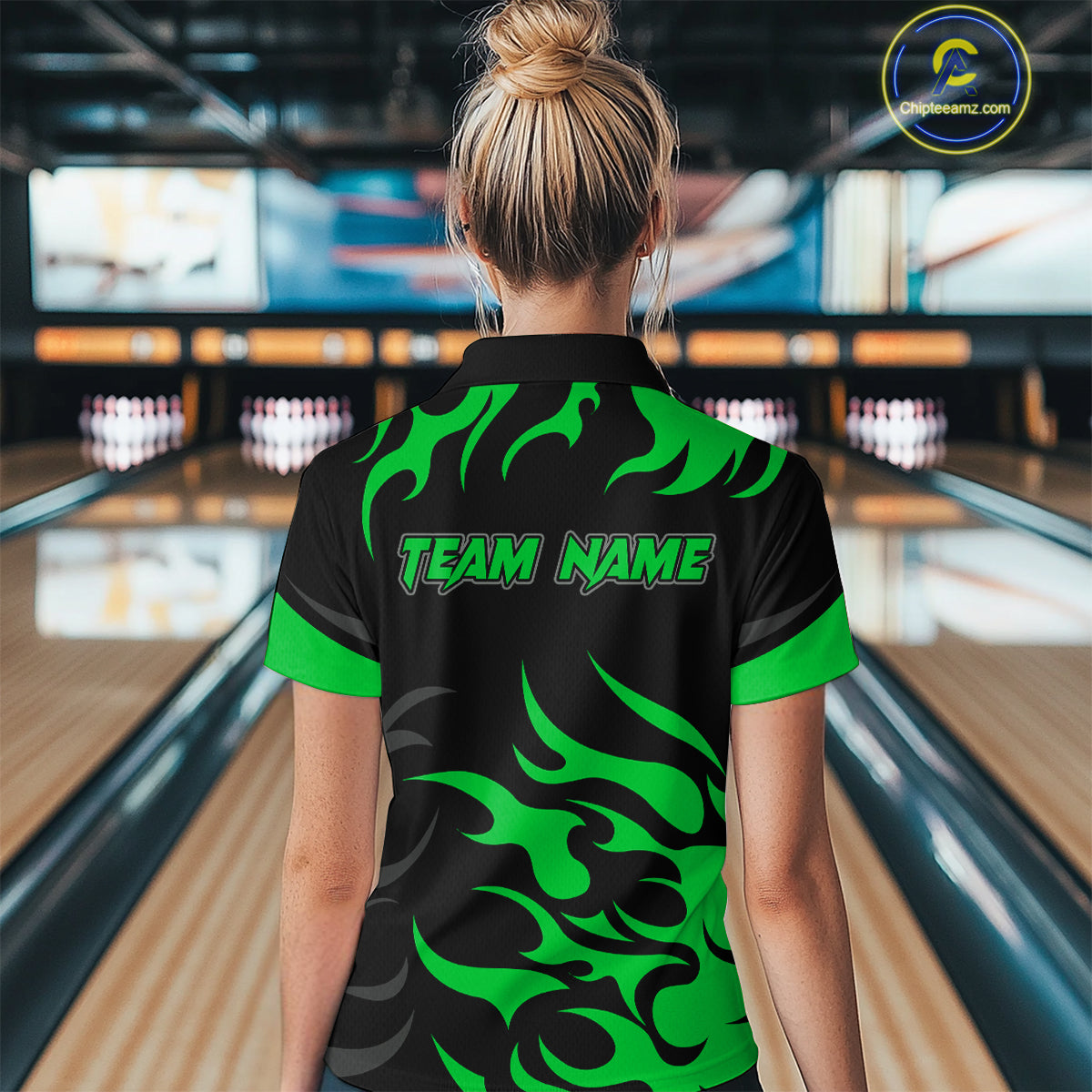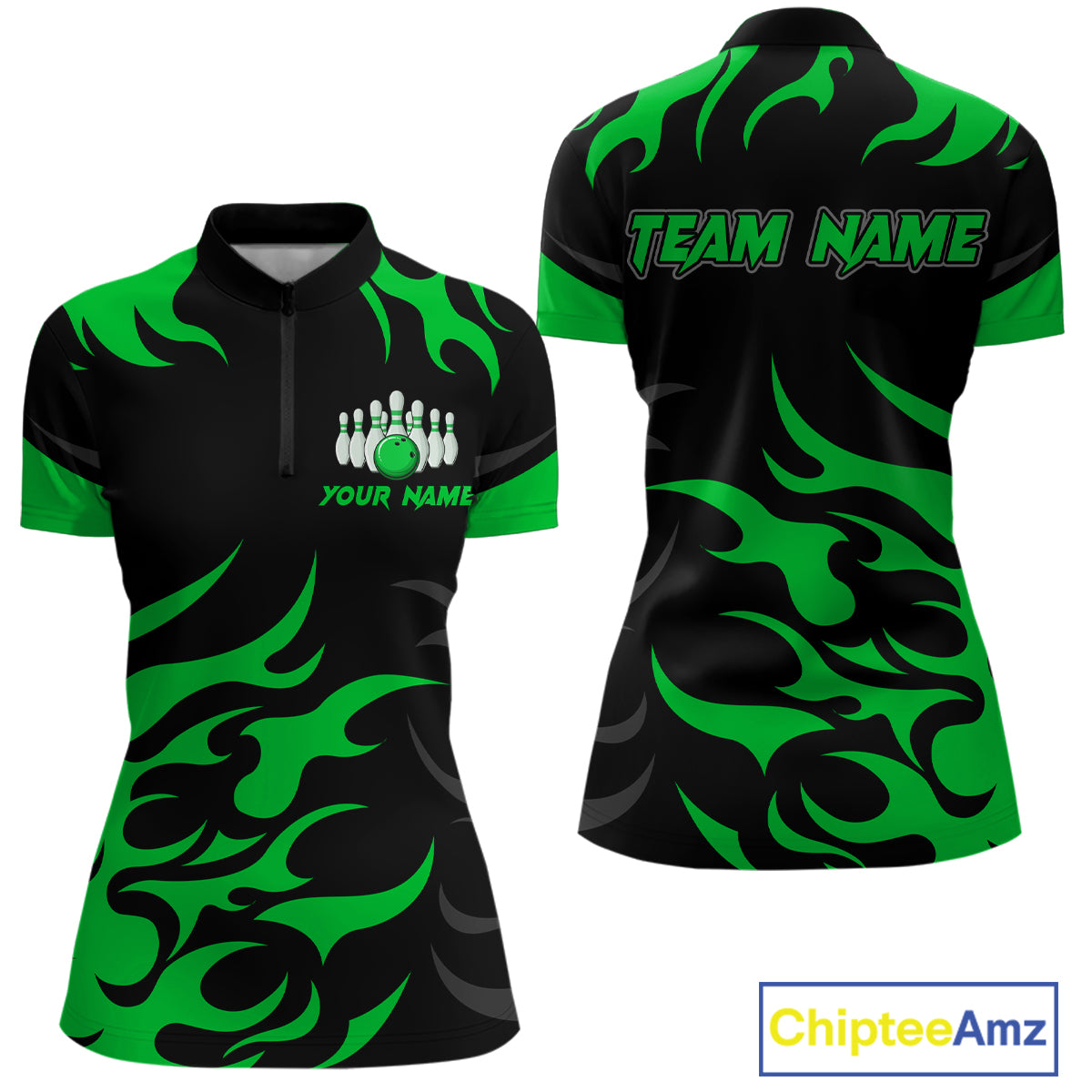 Black and Green Flame Bowling shirts for Women Custom team bowling jerseys, ladies bowling apparel NQS10268