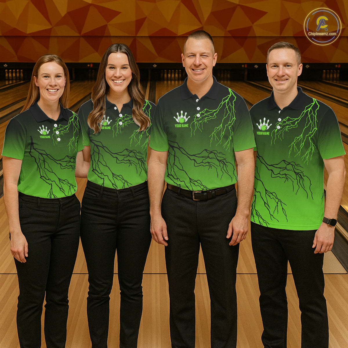 Black and Green gradient storm Lightning thunder Bowling shirts for Women Custom Bowling Team Jerseys NQS11171