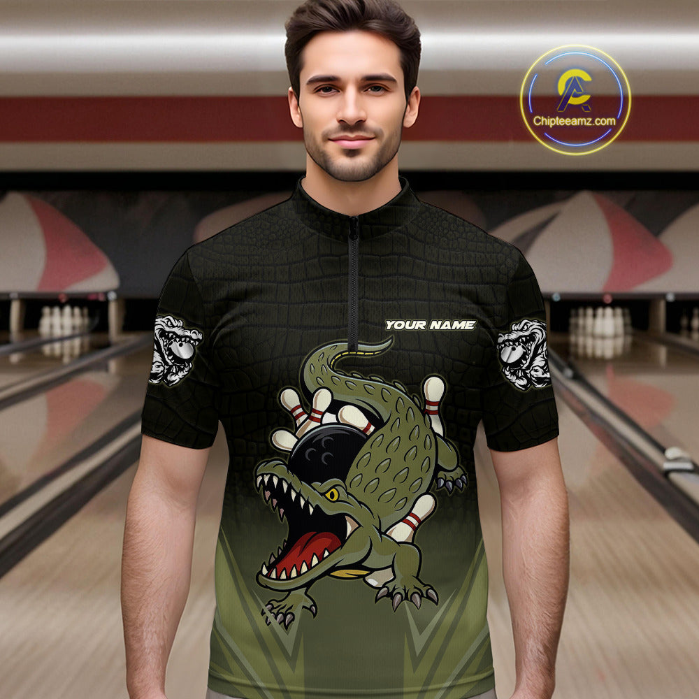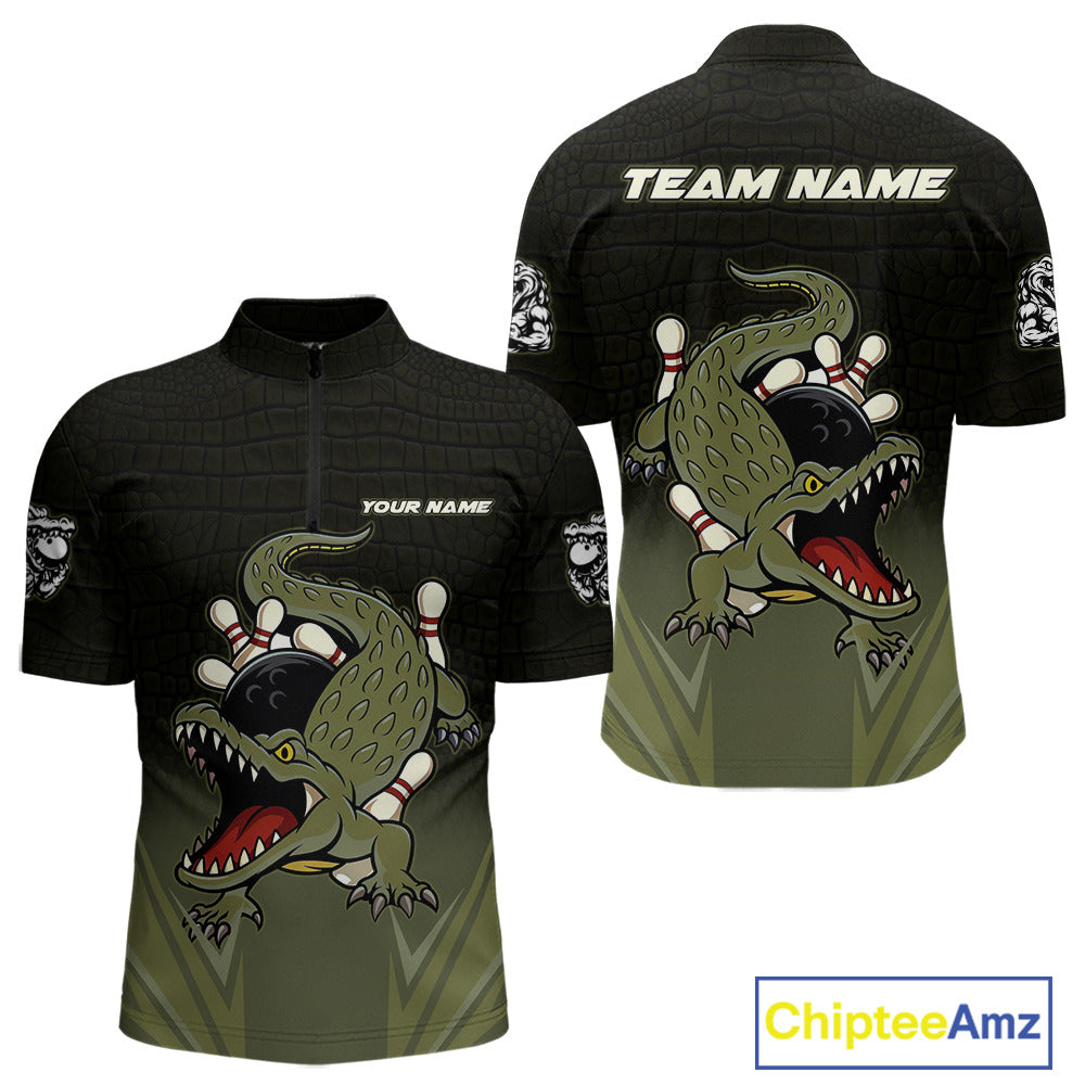 Custom Black and Green Alligator Bowling shirts for Men, Bowling Team league jersey NQS10735