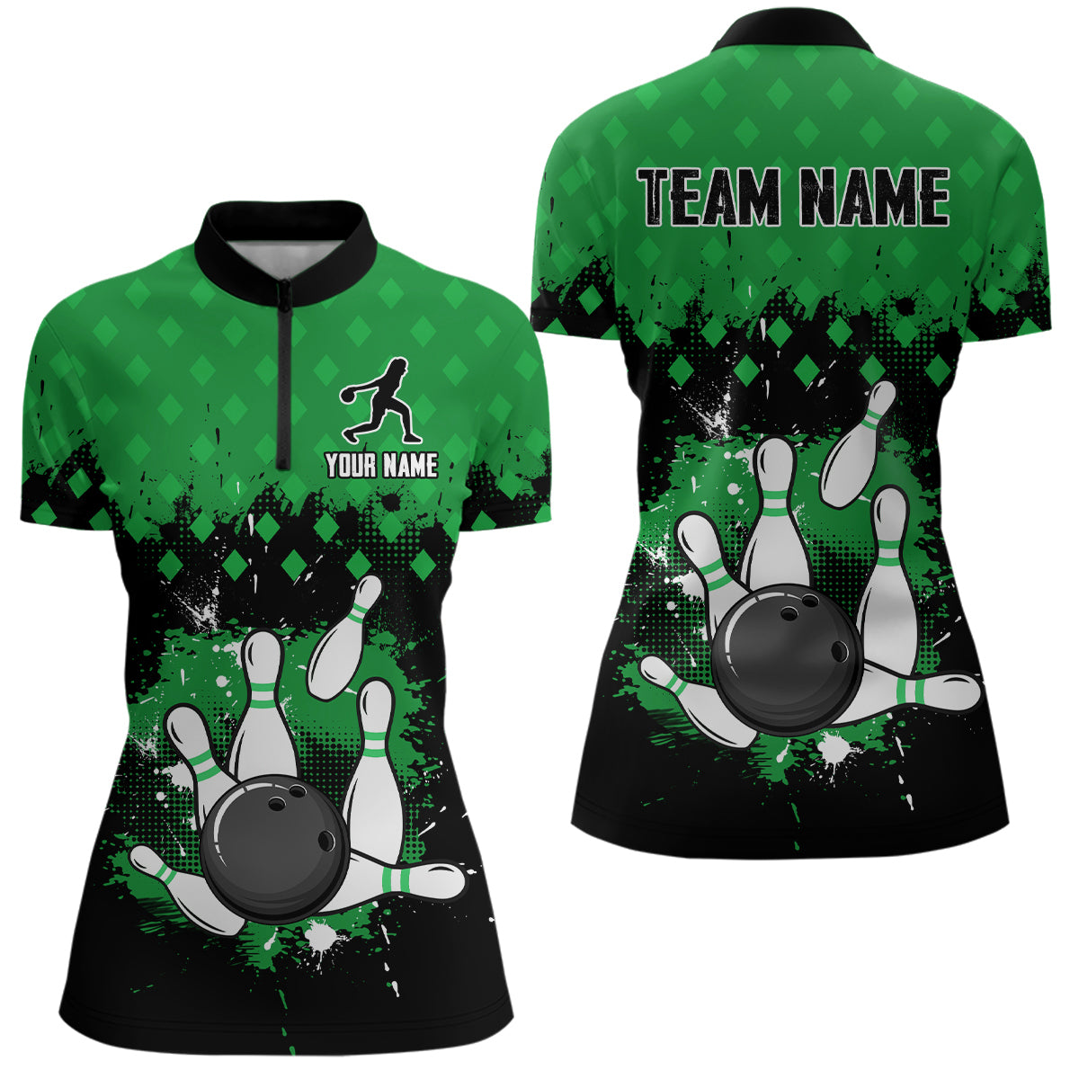 Custom Green Bowling Jersey For Men Bowling Shirt Team Bowling Quarter-Zip Shirt CP09