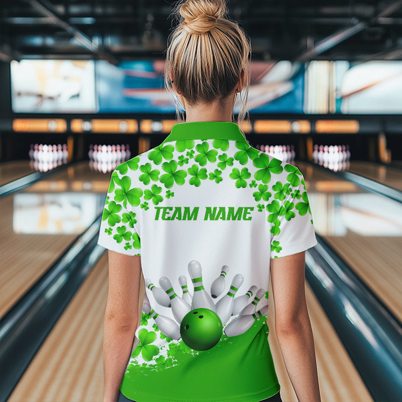 Green and White Shamrock pattern Bowling Shirts For Women Custom St Patrick Day Bowling Team Jerseys NQS9496