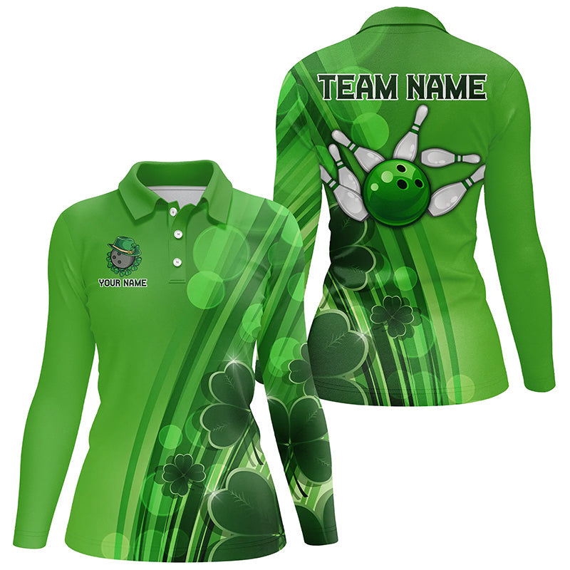 Green clover St Patrick Day bowling shirts for women custom Team bowling jerseys, gifts for bowlers NQS8084