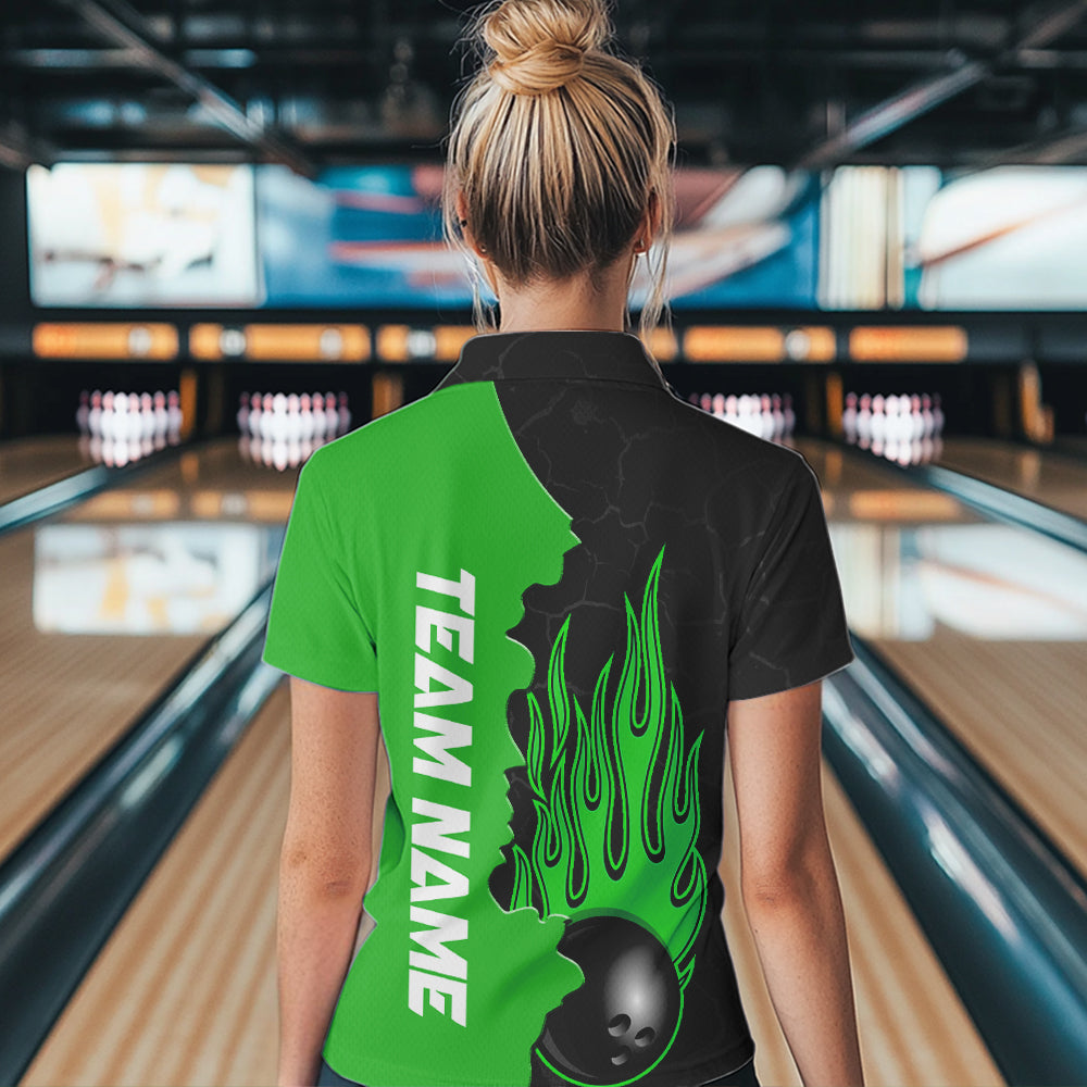 Green Flame Bowling Polo Shirts Men & Women Custom Bowling Team League Jerseys BDT471