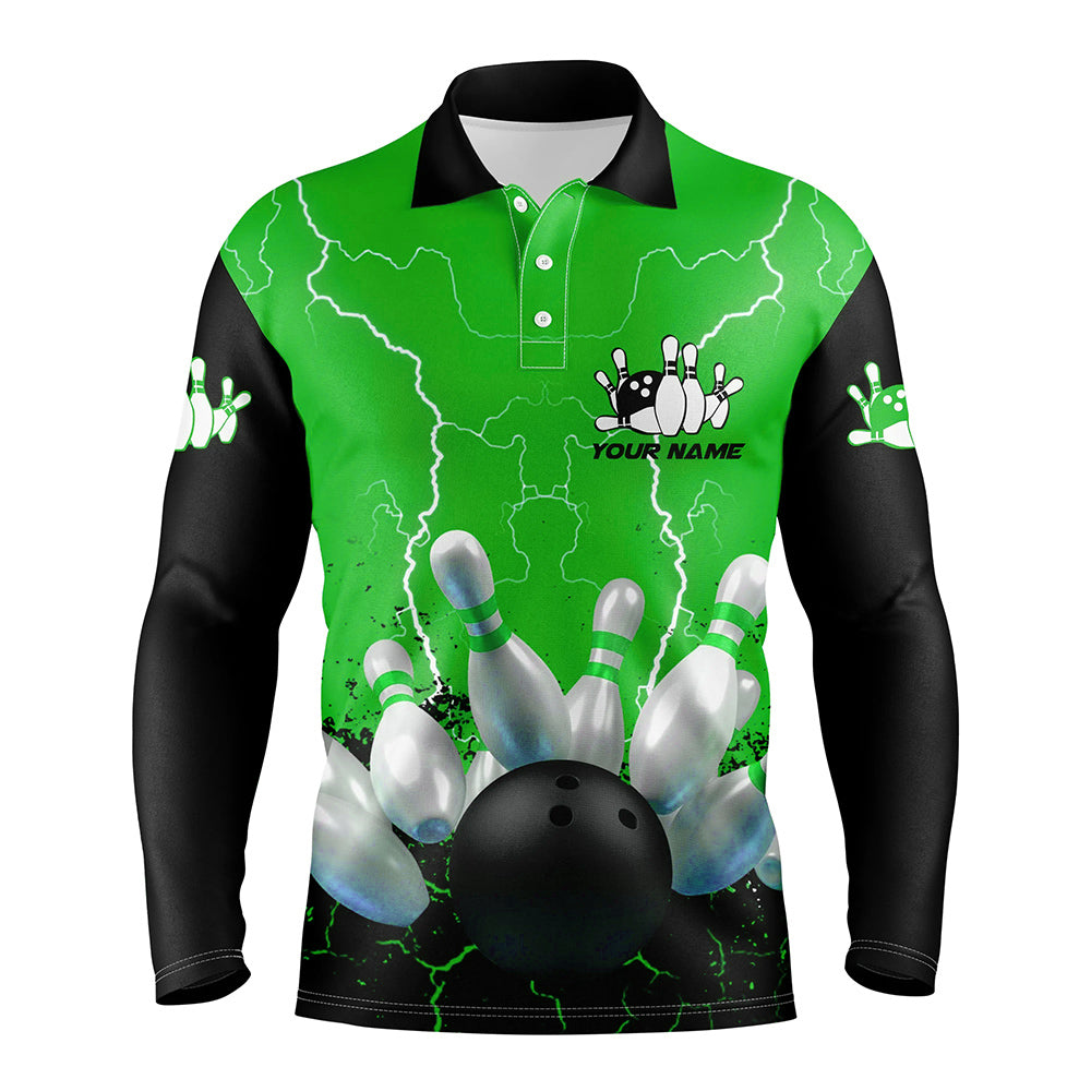 Green lightning Mens polo bowling shirts, Personalized men's bowling jerseys, bowling team jerseys NQS7280