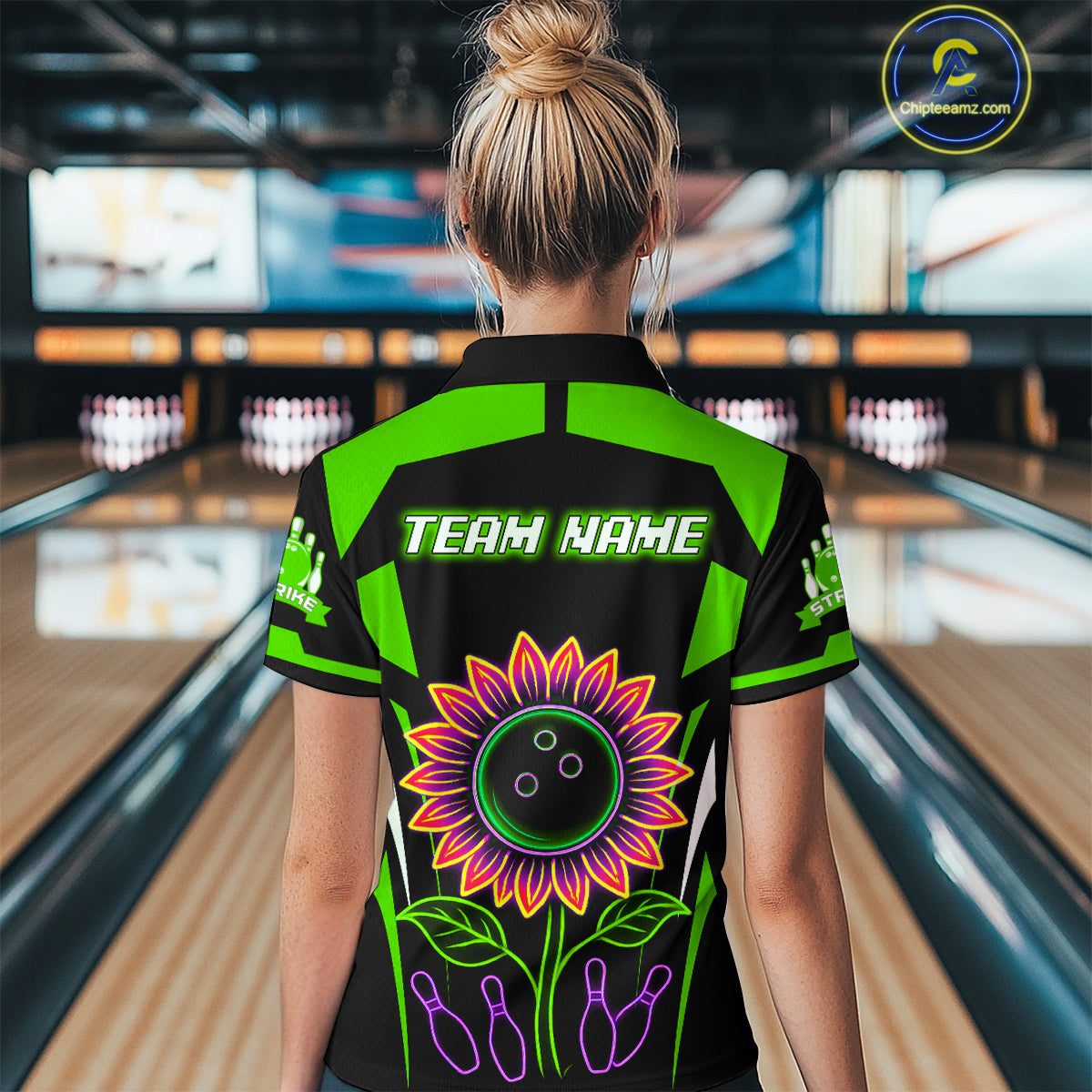 Green Neon Lightning Sunflower Bowling Shirt for Women Custom Team Bowling Polo Bowling Jersey QZT771