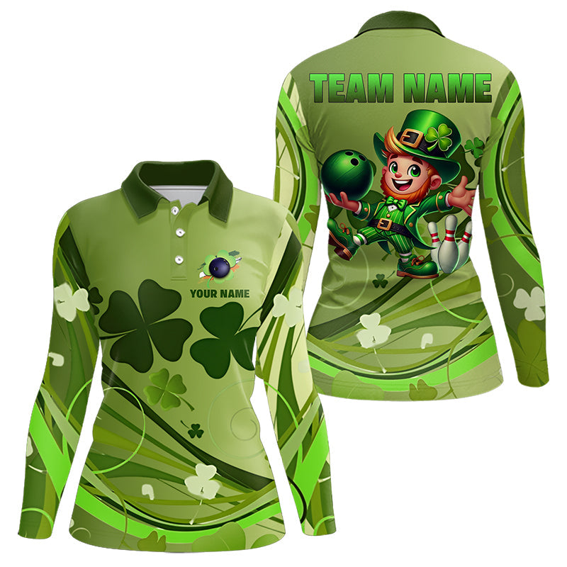 Green shamrock Lucky Women Bowling Polo, Quarter Zip Shirts Custom St Patrick Day Team bowling Shirts NQS9328