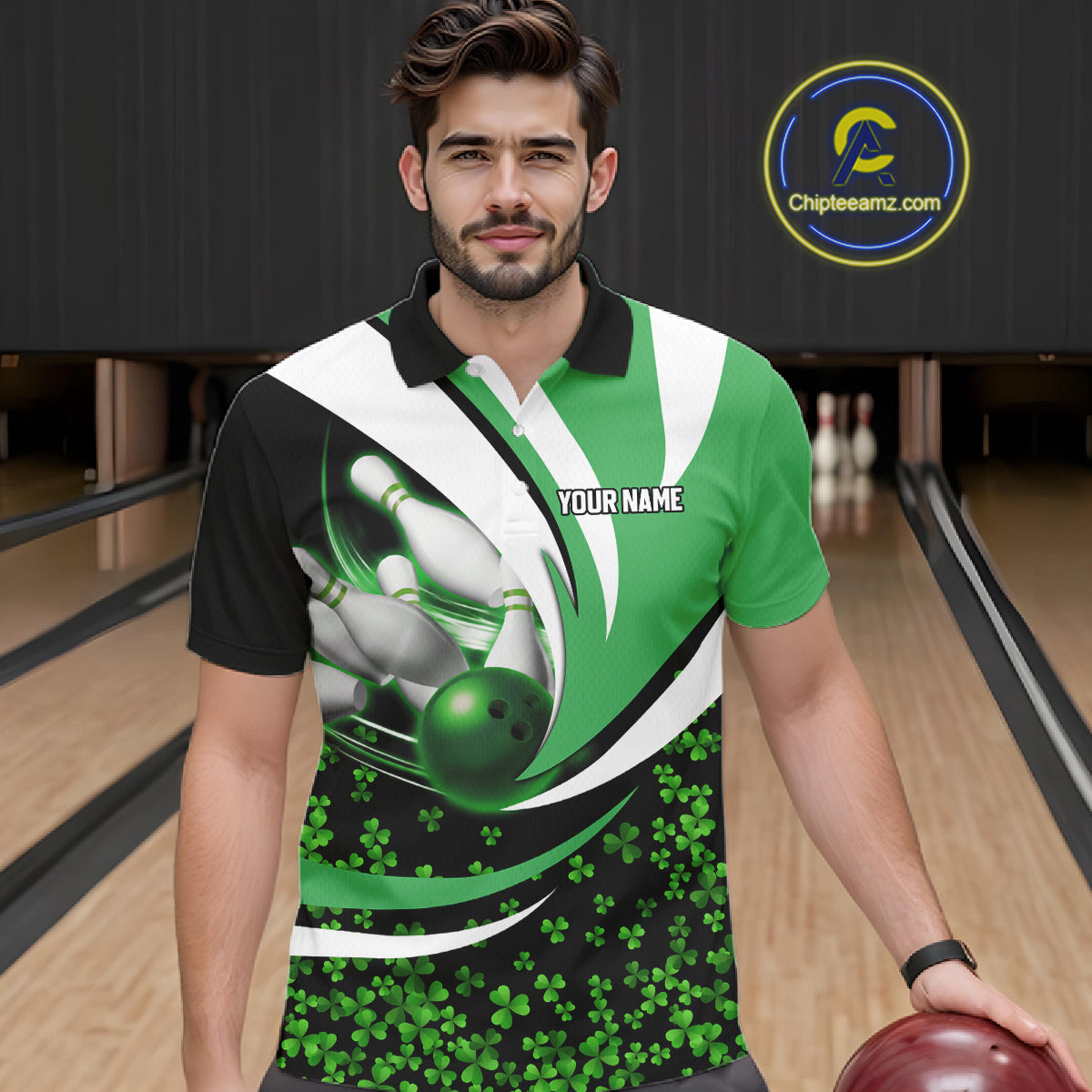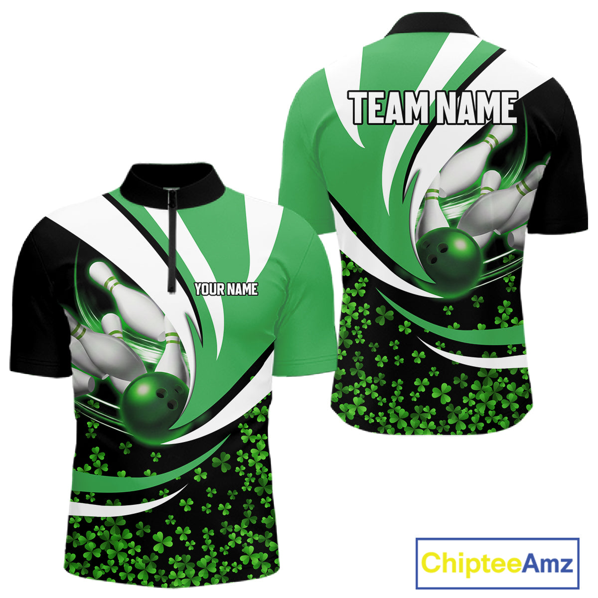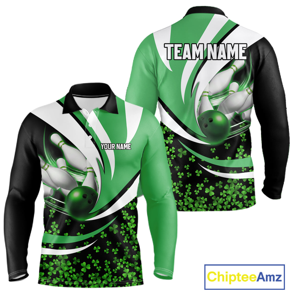 Green shamrock pattern Bowling Shirts For Men custom St Patrick's Day bowling outfits team jerseys NQS11166