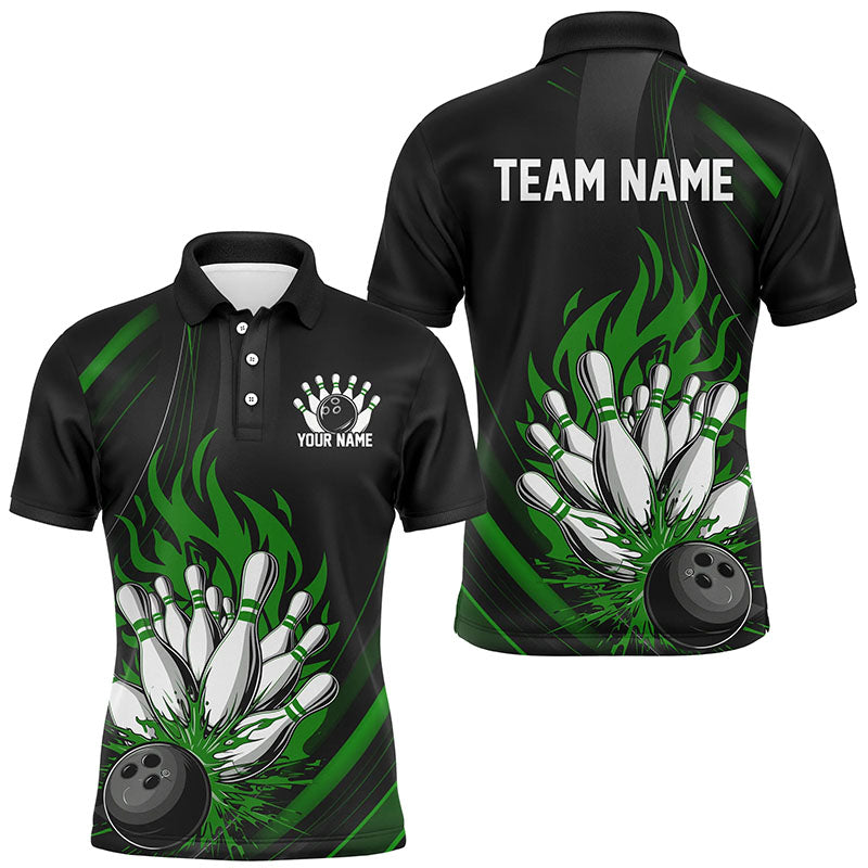 Personalized Bowling Shirts For Men, Black And Green Flame Bowling Team Shirt Bowlers Outfit IPHW7209