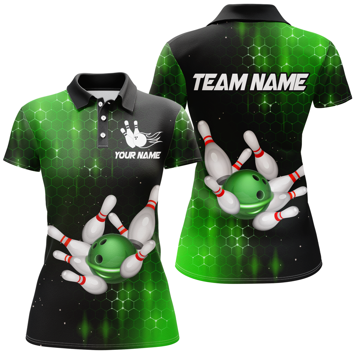Personalized Green Bowling Shirts Men Women Bowling Team Jersey Bowling Polo Shirt BDT488