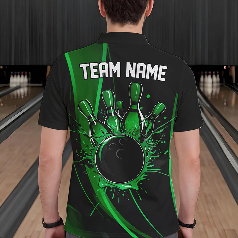 Custom Black And Green Bowling Polo Shirts For Men, Bowling Tournament Team Shirts IPHW8543