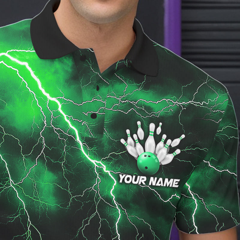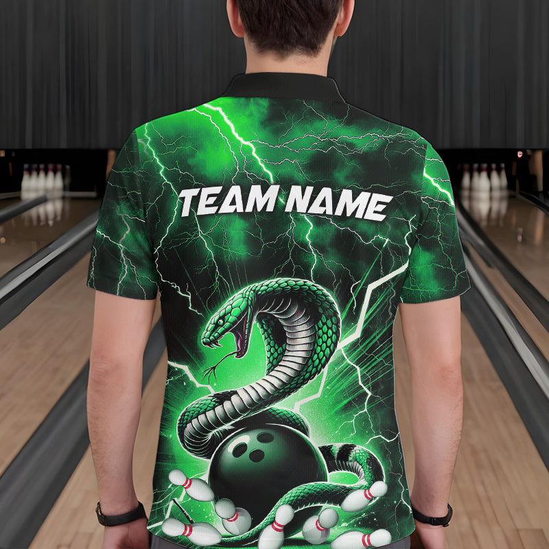 Green Thunder Lightning Custom Cobra Snake Bowling Polo Shirts For Men, Bowling Team Shirt IPHW8896