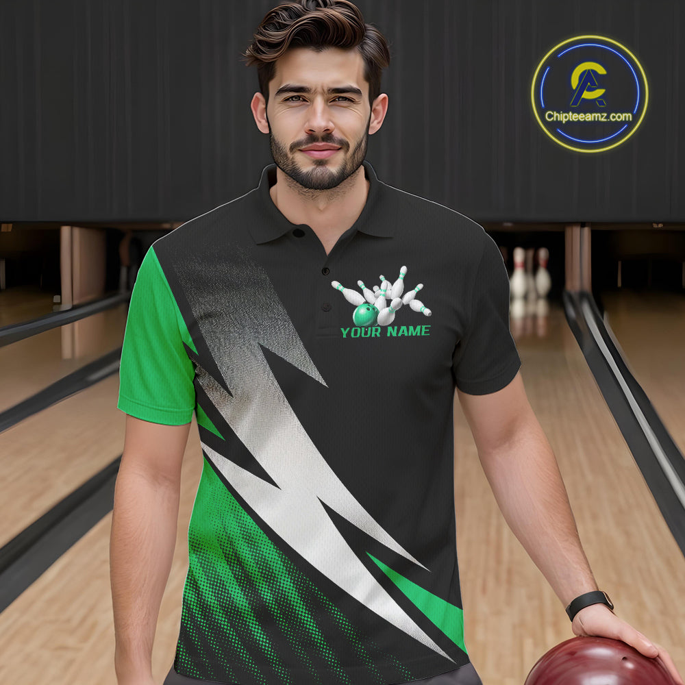 Black And Green Custom Bowling Jerseys, Men Polo Shirt Bowling Tournament Outfits IPHW9079