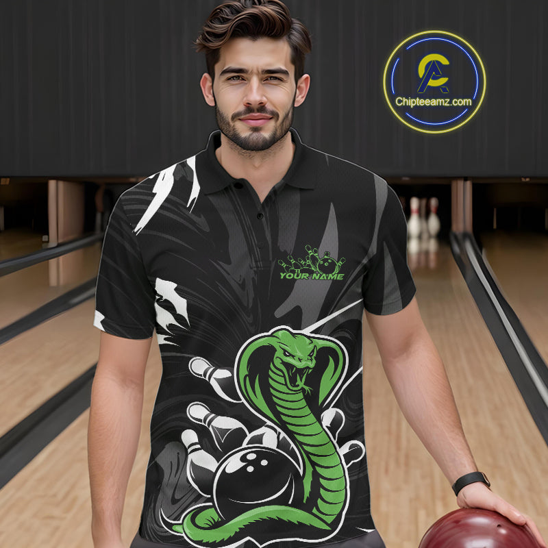 Custom Green Cobra Snake Bowling Team Jerseys, Bowling Polo Shirts For Men IPHW9709