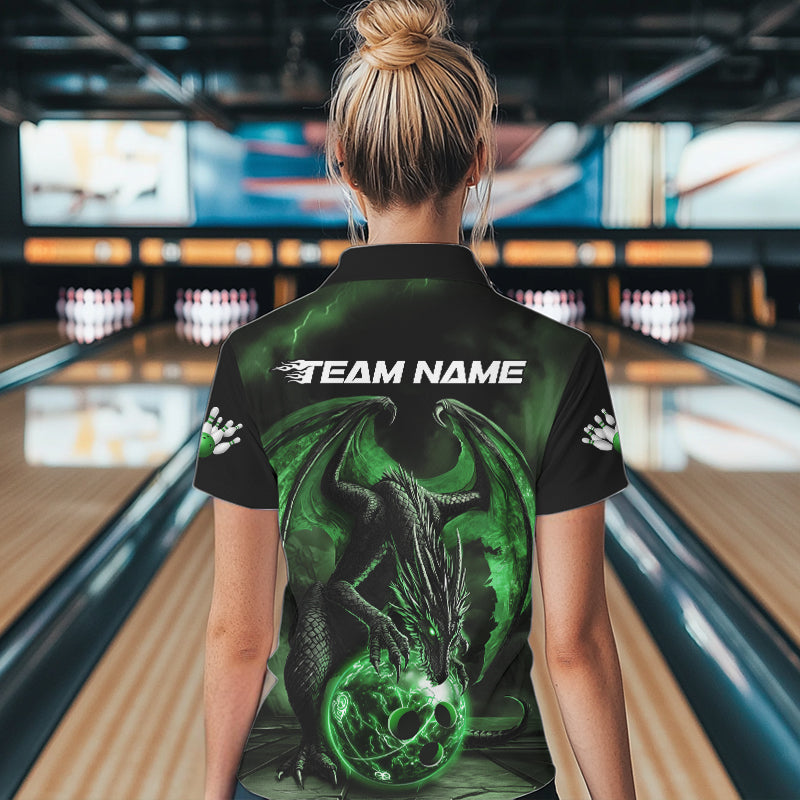Black And Green Custom Bowling Team Womens Quarter-Zip Shirts, Dragon Bowling League Shirts IPHW8691