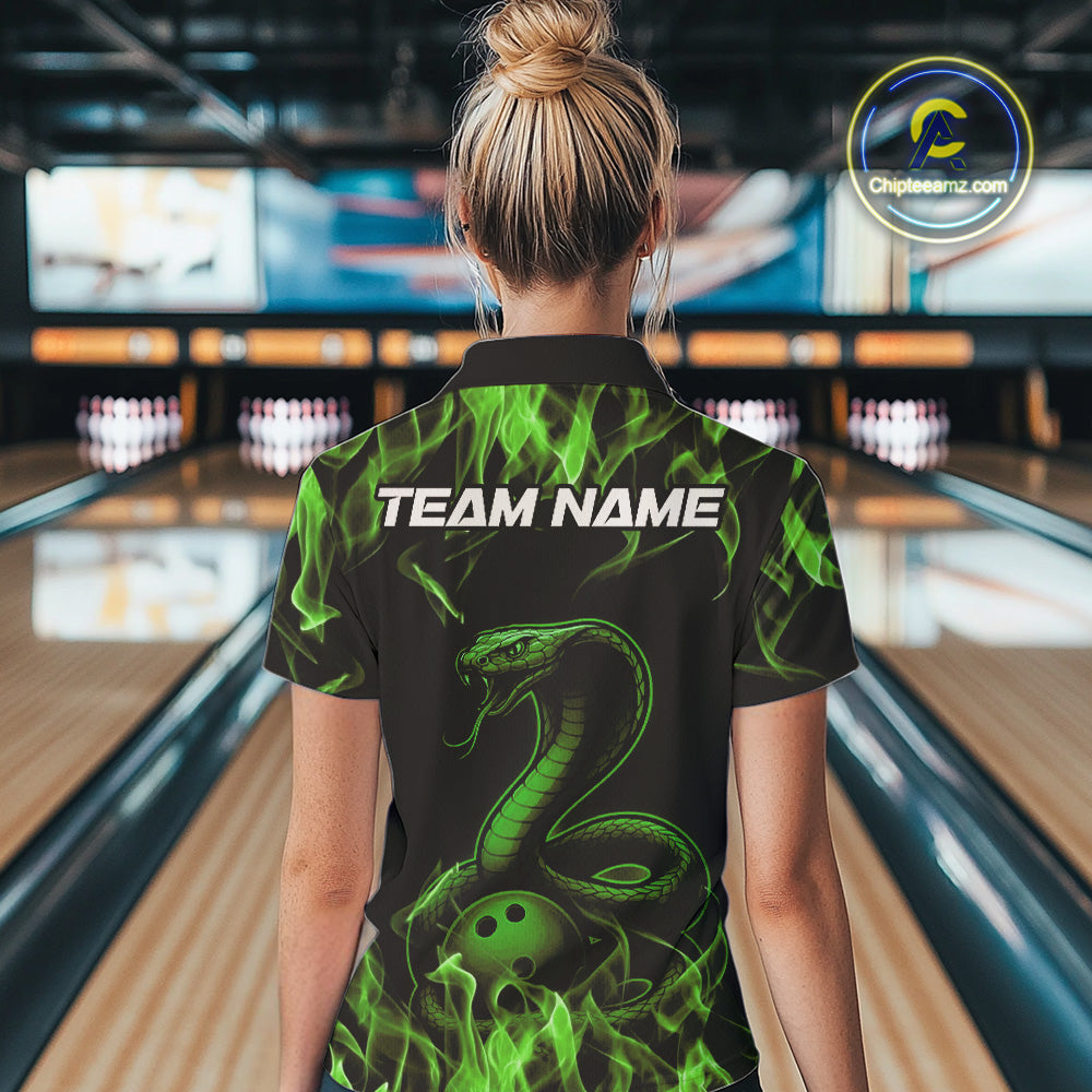 Custom Black And Green Flame Cobra Snake Bowling Women Quarter-Zip Shirts, Team Shirt IPHW9043