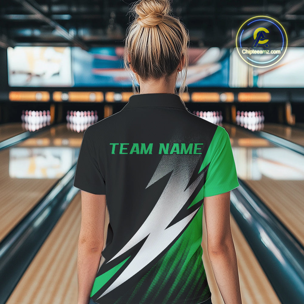 Black And Green Custom Bowling Jerseys, Women Quarter-Zip Shirt Bowling Tournament Outfit IPHW9079