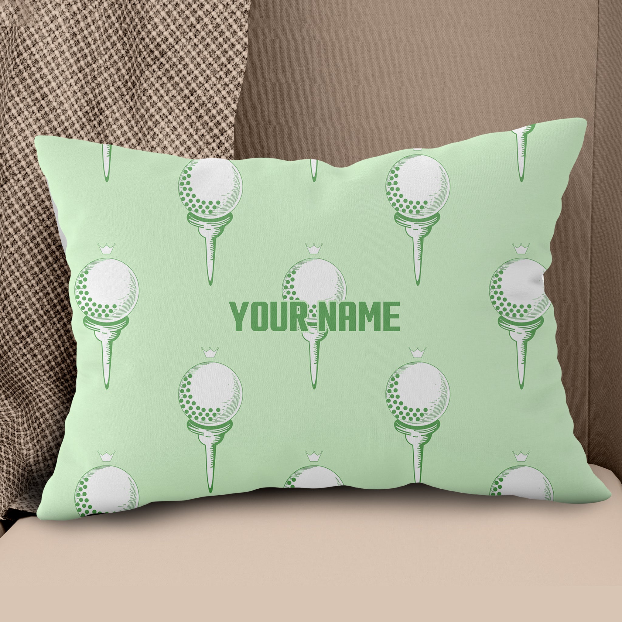 Green Golf Ball On Tee Personalized Pillow For Golfers Custom Golf Gifts LDT1095