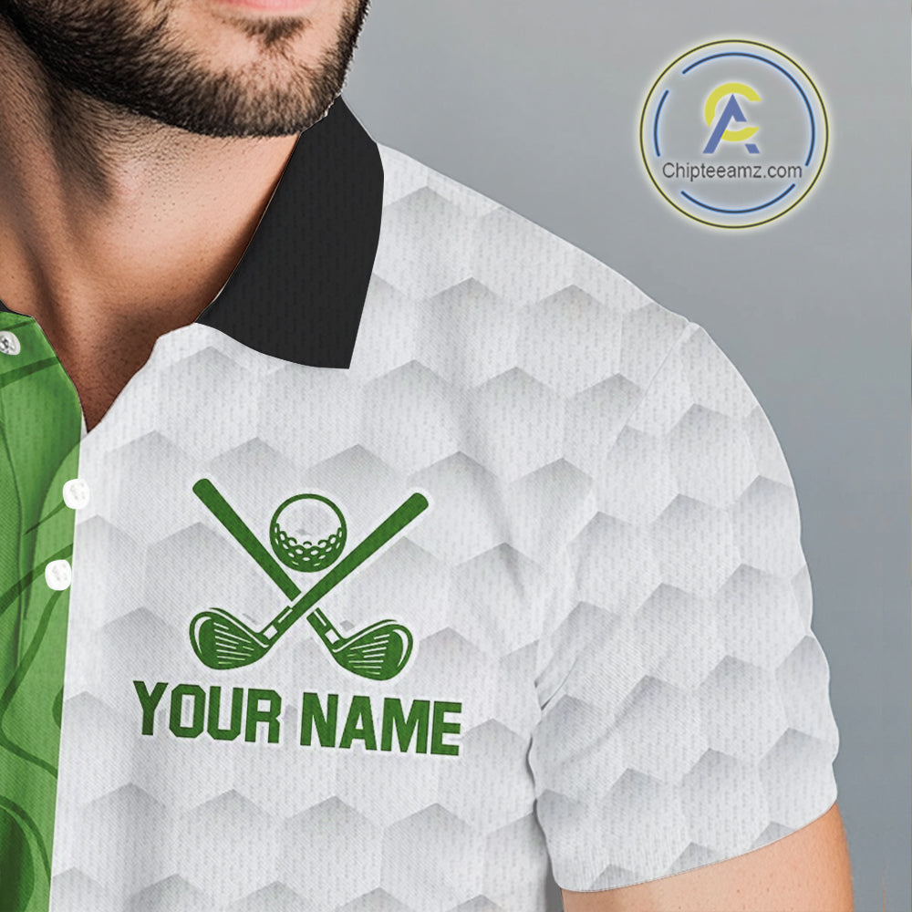 White and Green Camo Flame Mens Golf Polo Shirt Custom golf attire for men, personalized golf gifts NQS10710