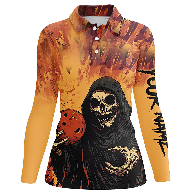 Halloween Skull Bowling custom Women Bowling Polo, Quarter Zip Shirts, gift for team bowlers jerseys NQS8183