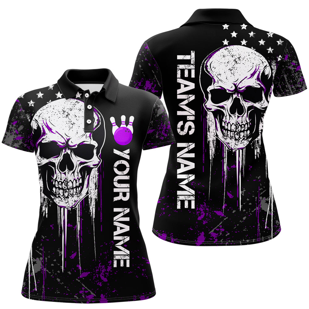 Purple Skull Bowling Shirts Men & Women Custom Halloween Bowling Jersey Team Polo BDT554