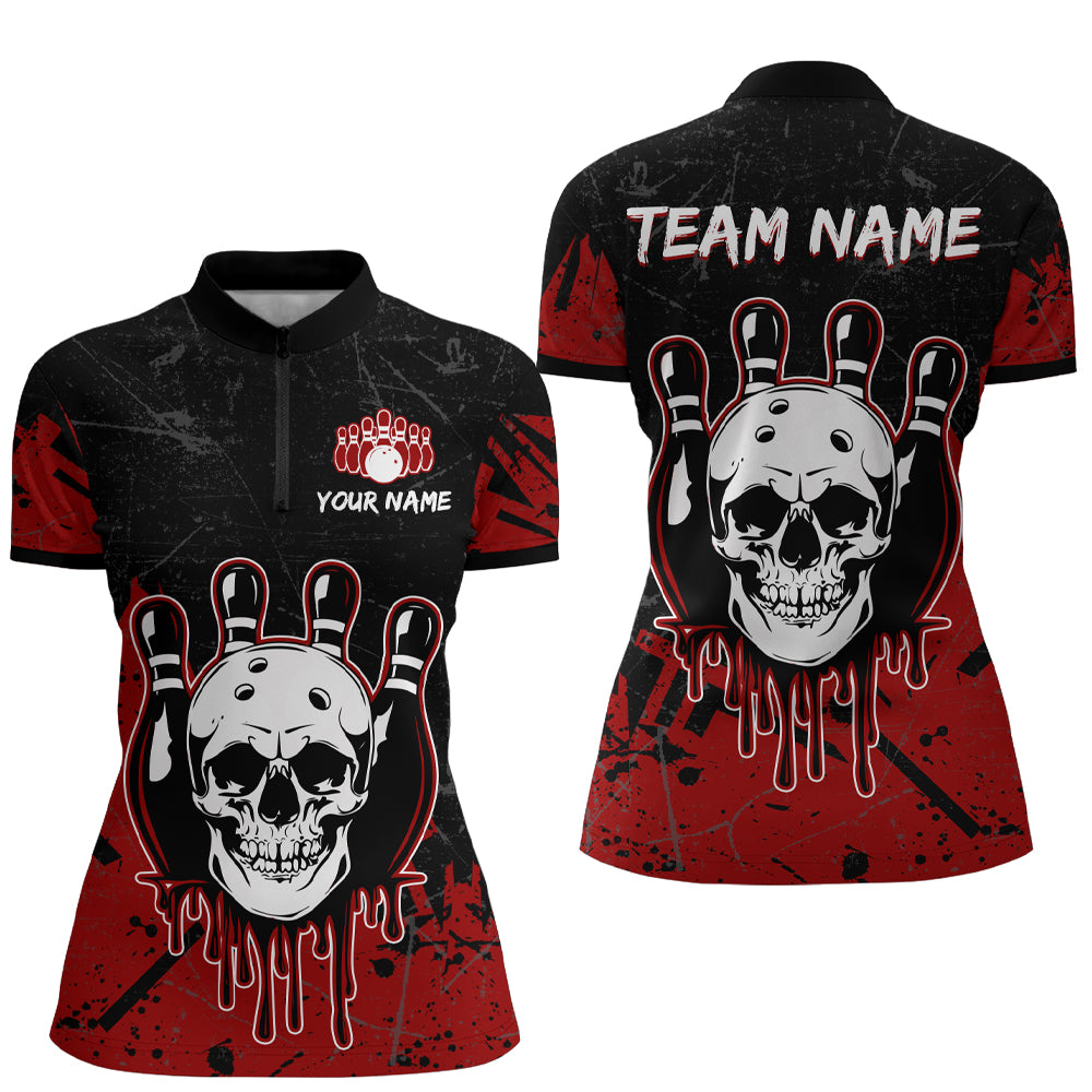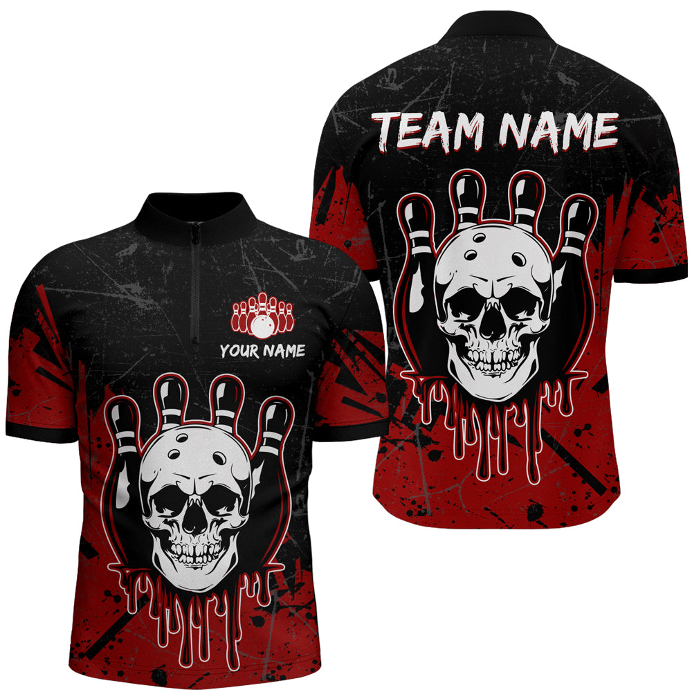 Red Skull Bowling Jersey for Men & Women Custom 1/4 Zip Bowling Shirt Team Halloween Shirt BDT552