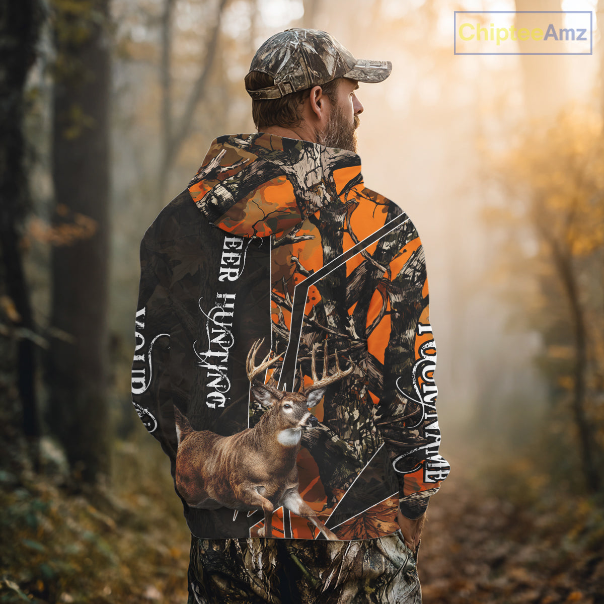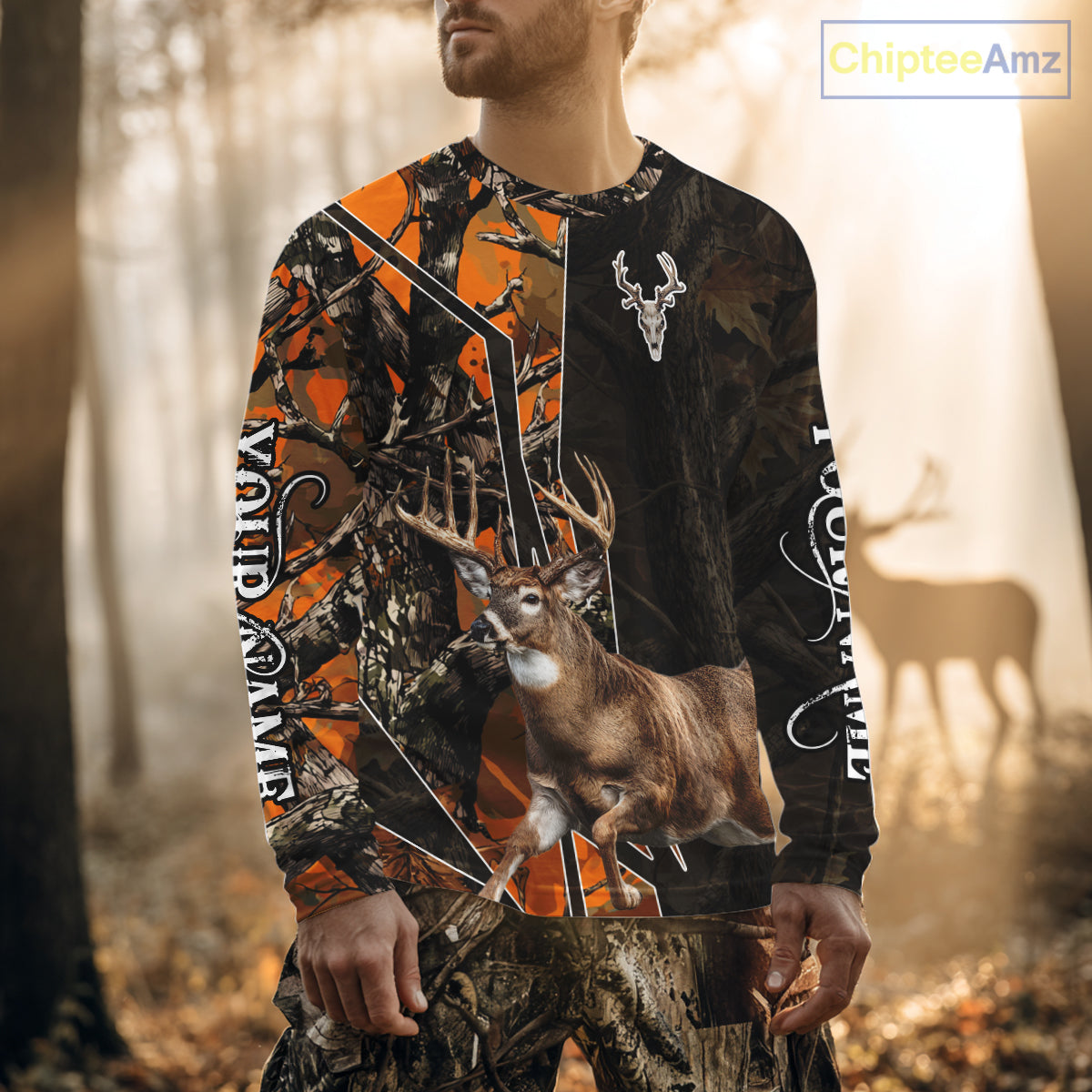 Deer Hunting Shirt 3D Orange Camo Black Custom Name With Deer Skull Whitetail, Hunting Gift NHT236