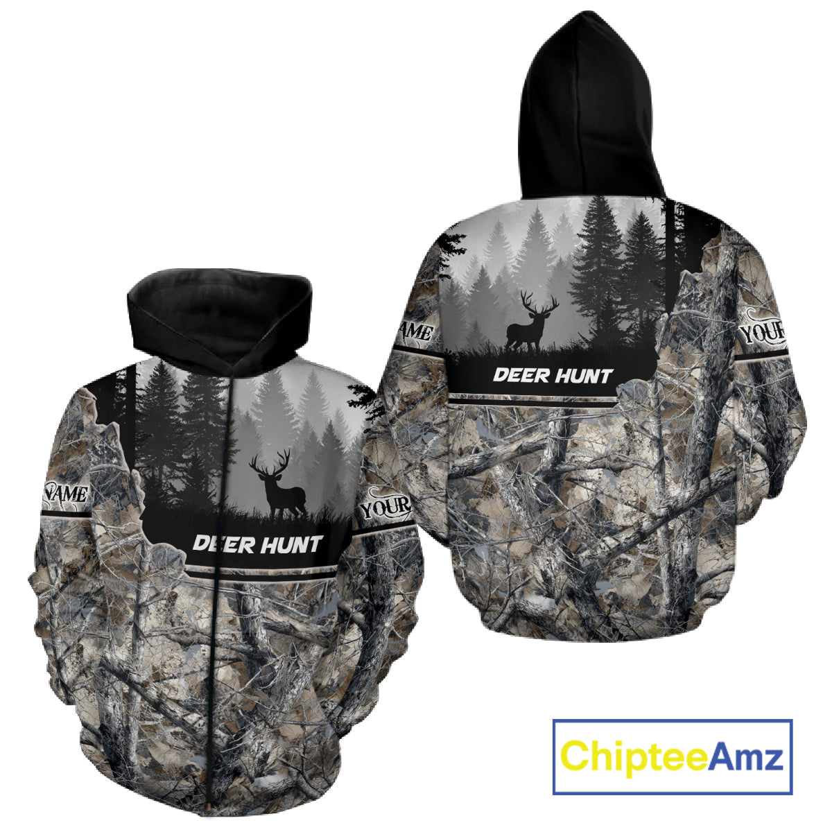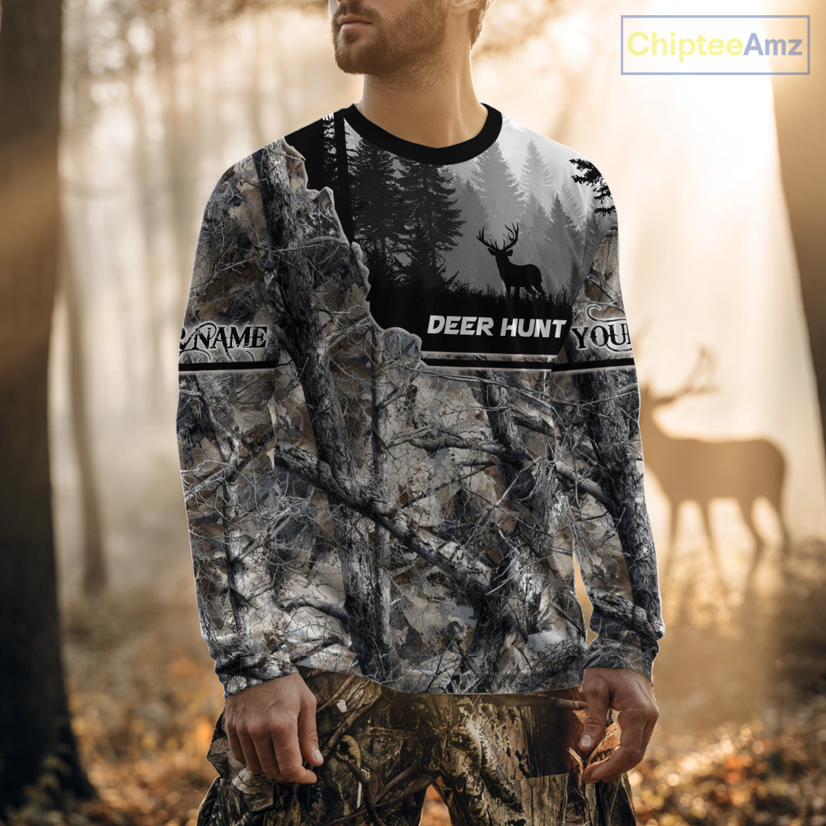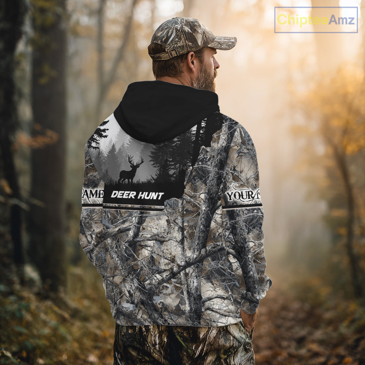 Whitetail Deer Hunting Winter Camouflage 3D Custom Name Shirts, Custom Deer Hunting Winter NBT197