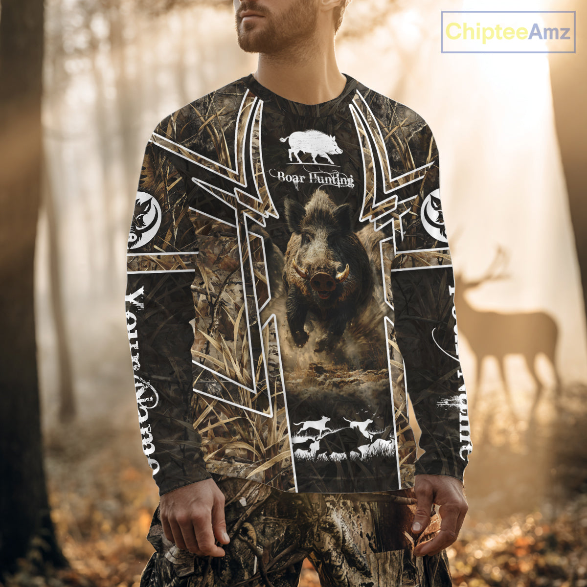 Wild Hog Hunting Full 3D Camo Printed Custom Name Boar Hunting Clothes, Hunting Gifts NBT192
