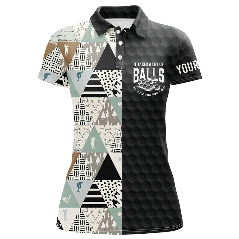 It Takes A Lot Of Balls Geometric Pattern Womens Golf Polo Shirt Custom Golf Gifts For Women LDT1049
