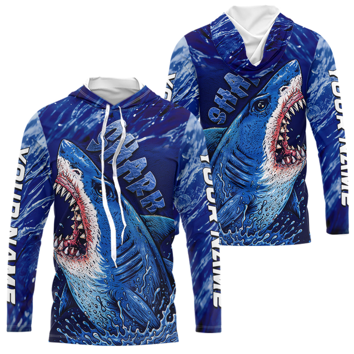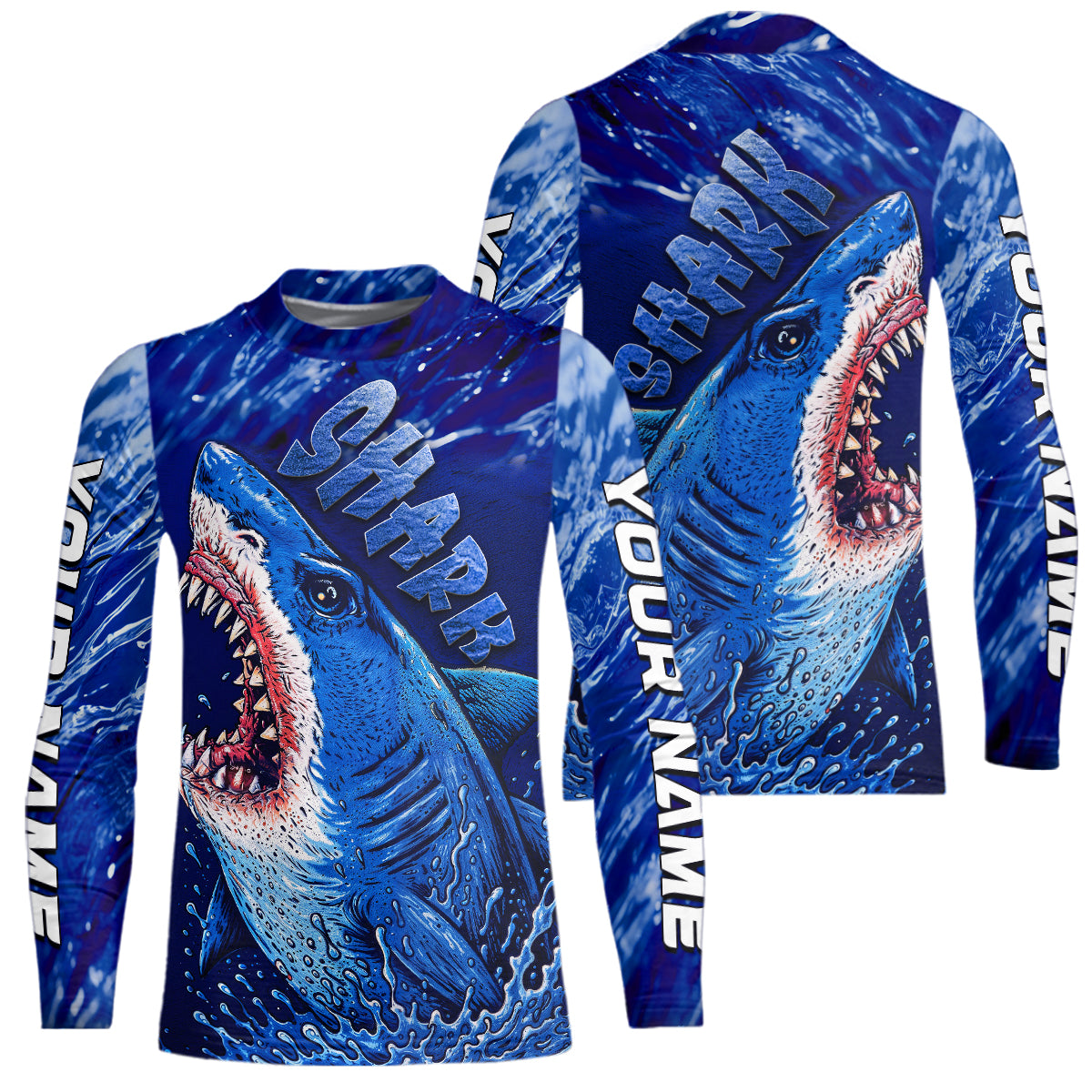 Blue Ocean Sea camo angry Shark fishing UV Protection shirts custom name Shark fishing jerseys NQS10419