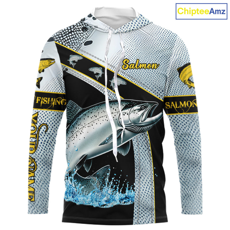 Chinook Salmon fishing scales UV protection Custom long sleeve fishing shirts, Salmon fishing jerseys NQS10216